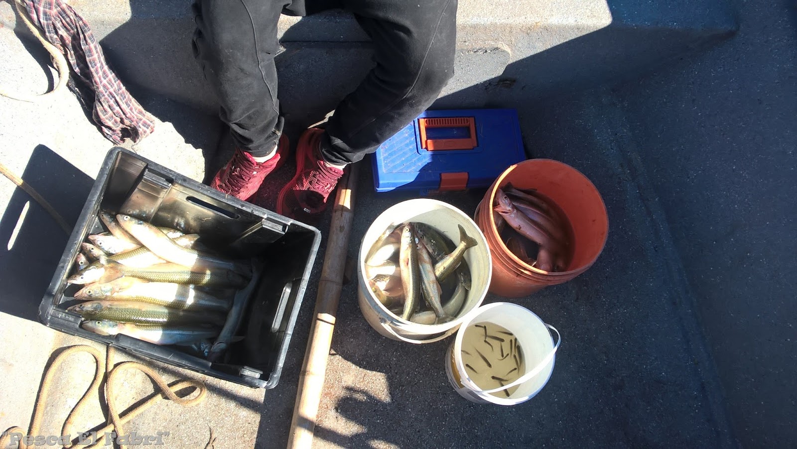 Llegados al lugar predestinado, colocamos las lineas de pater y fondo que prefirieron usar los muchachos y las dimos al agua. Prácticamente al momento comenzaron los resultados como era de esperar, los pejes de 25 a 28 están a la orden del día así que fue para devolver pescado a lo bestia, solo guardábamos los de 30 cm en adelante....